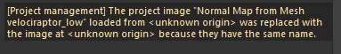 While attempting to bake my high poly model onto my low poly model, I've noticed this "error" message with every time I baked. What is this and how do I fix it? I don't know anything that could possibly have the same name as I named each textureset and model differently. Thanks for the help!