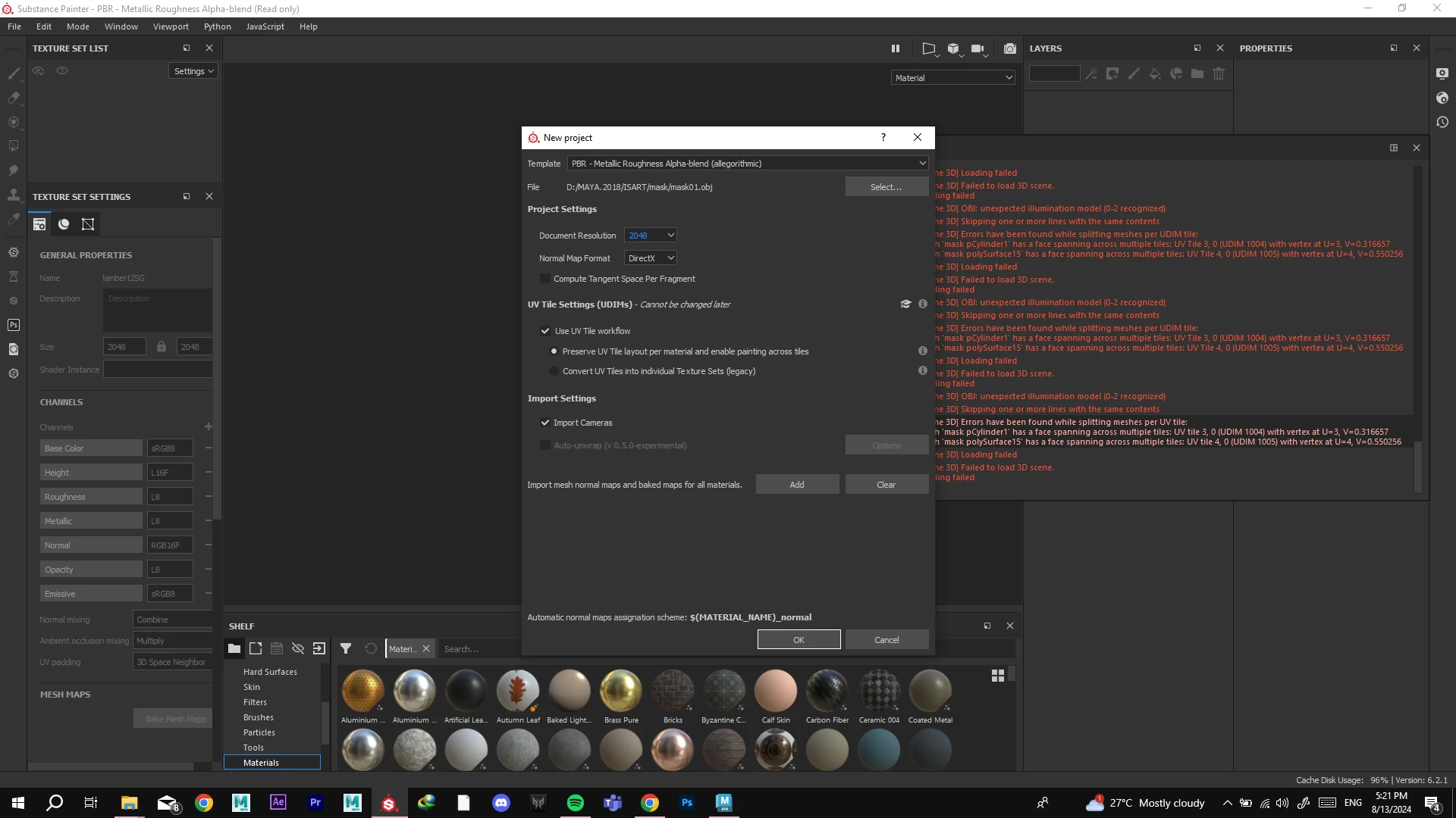 error while importing model in substance painter