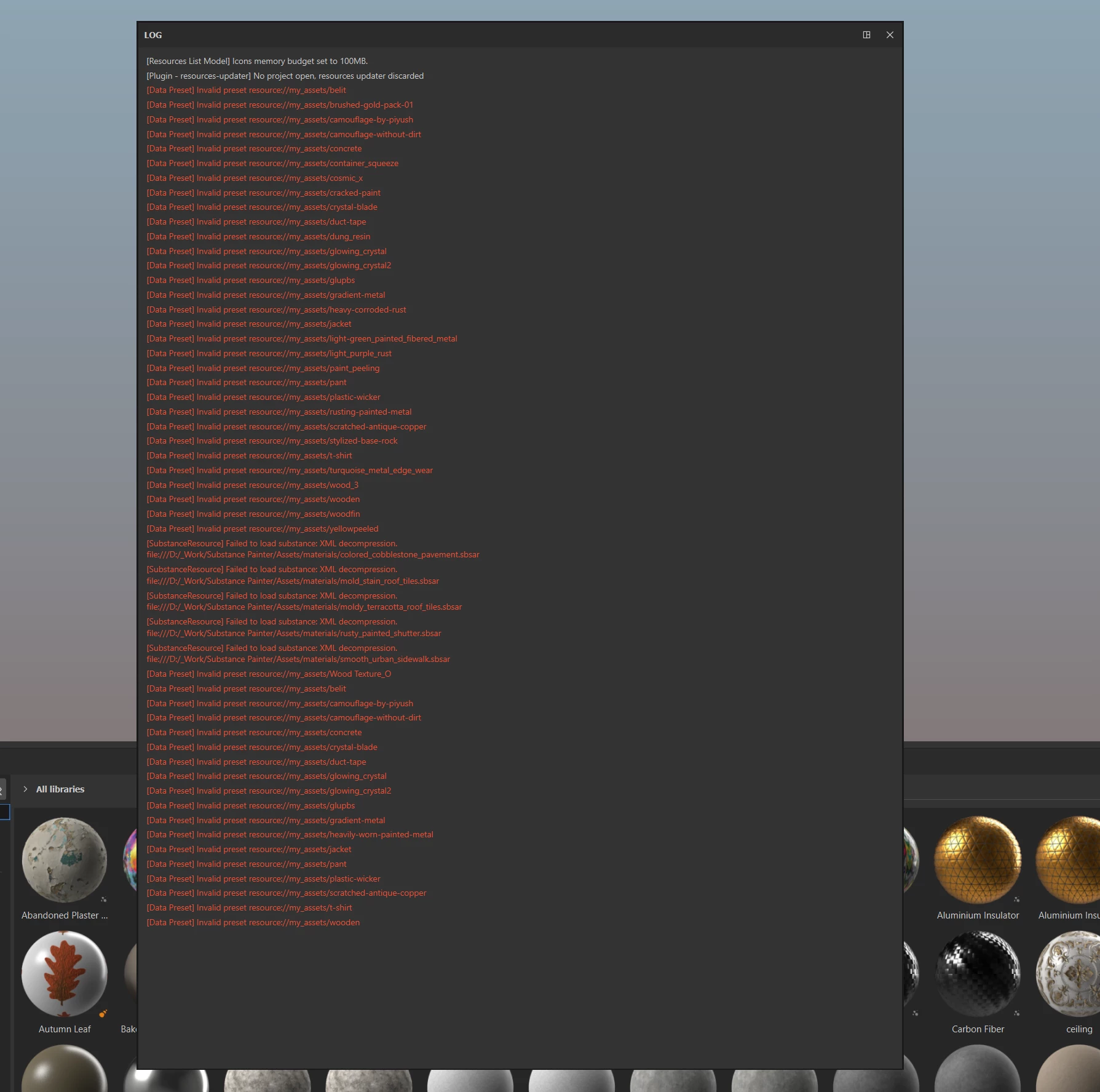 I get again these messages everytime I open Painter. I know I should save the materials and textures directly to my librabry, but that doesn't seem to work anymore. (had this same issue in the past)