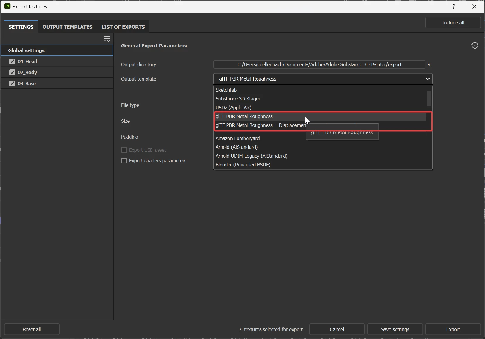 I am attempting to export my textures for my asset as glTF files but this option is shown as grayed out in my viewer and says (this preset is not avalible for your current project). How can I fix this issue? I selected PBR metal roughness for the project template. Substance Painter did allow me to export a GLB 3D asset but without the textures it is useless! Please help!