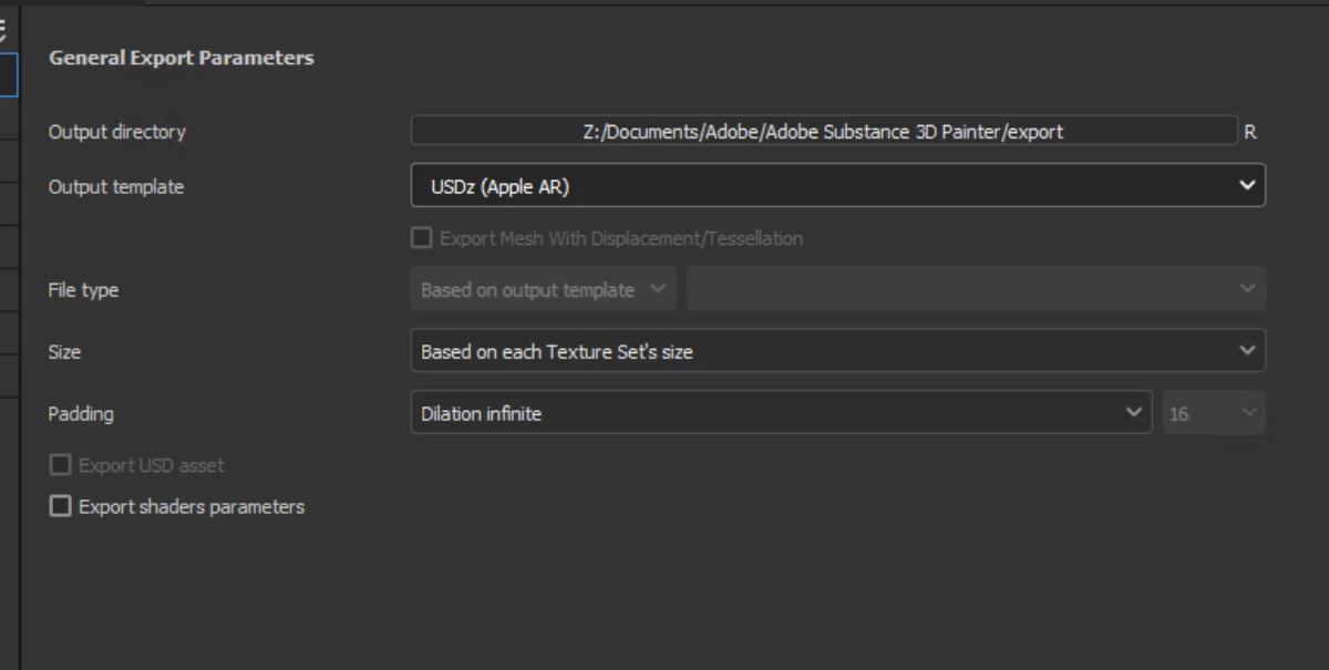 I want to export an usdz file but painter won't let me export both textures and the mesh.