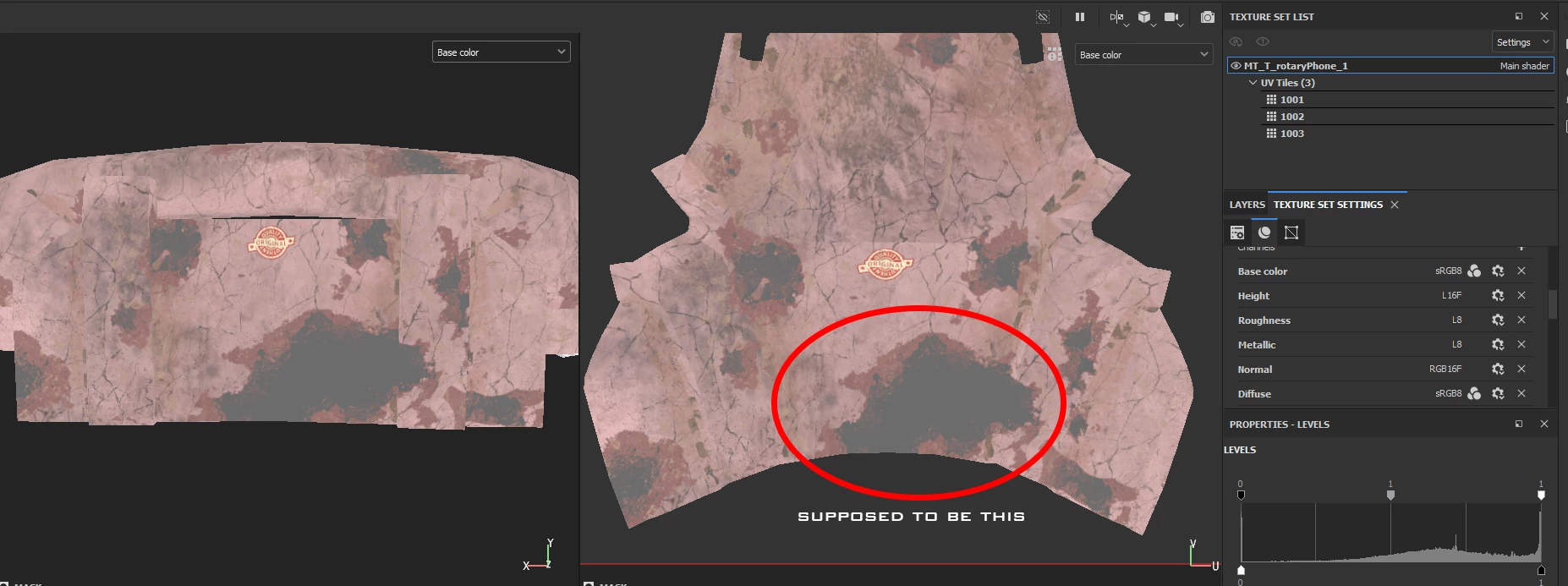 exported Base color map different from viewport/Uv inside substance