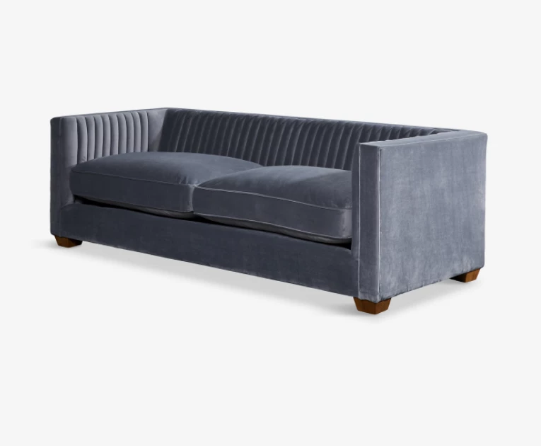 From the reference sent, I'd say the material of the coach is Denim, therefore I advise you to simply start with a Denim material. Something like this should do the job.