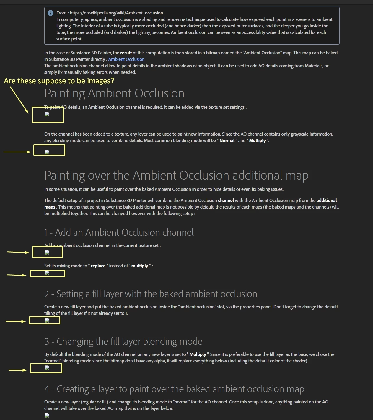 Frustation with your help documentation Section "Painting Ambient Occlusion "- Images are missing