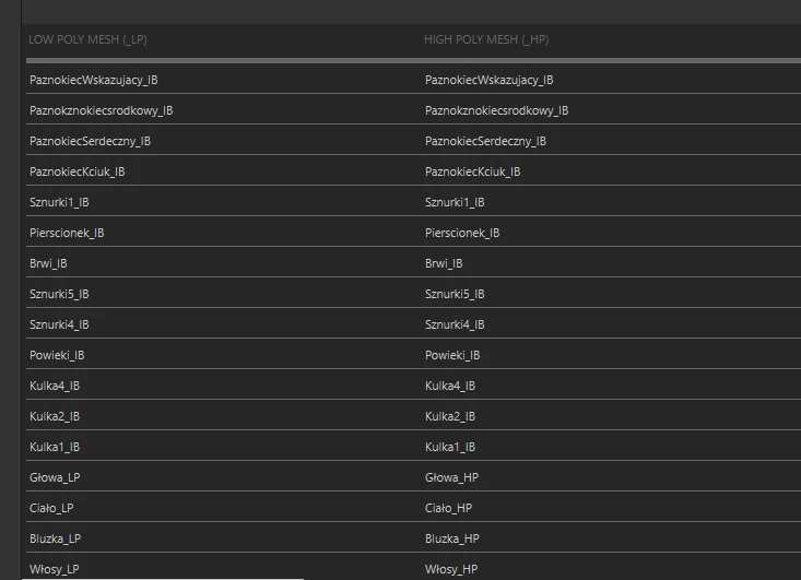 Hi, when I use Bake Mesh I get gray spots on the model, the mesh is fine, the UV is well placed (I think) and the faces are facing the right way. Some objects have "IG", they just don't have the HP version. However, the problem occurs both on models with and without the HP version.