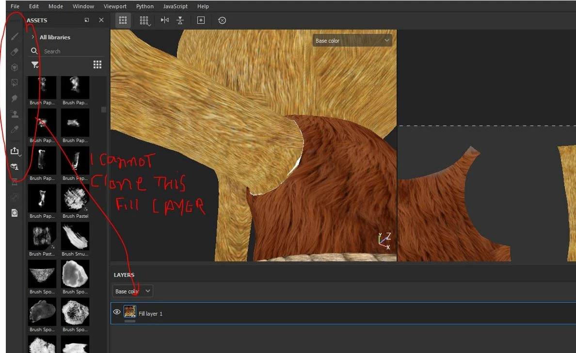 Hello everyone, i need to clone a part of my fill layer but i cannot do that, it's not available any tool (paint, proyection, etc) how can i clone that? or maybe make it editable layer, idon't know. I'm using substance 3D painter 7.4 thanks for your help and greeting from Machu Picchu - Peru.