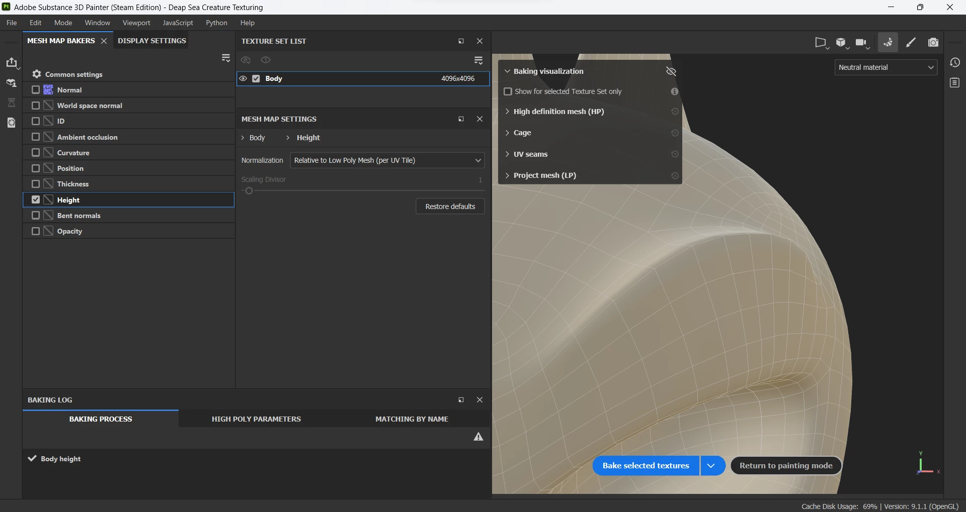 Hi, just firt time tried Substance painter, I finished texture my height detail on my mesh, but now I dont know how to turn it into a height map to export? And why I didnt see the height texture on bake window?