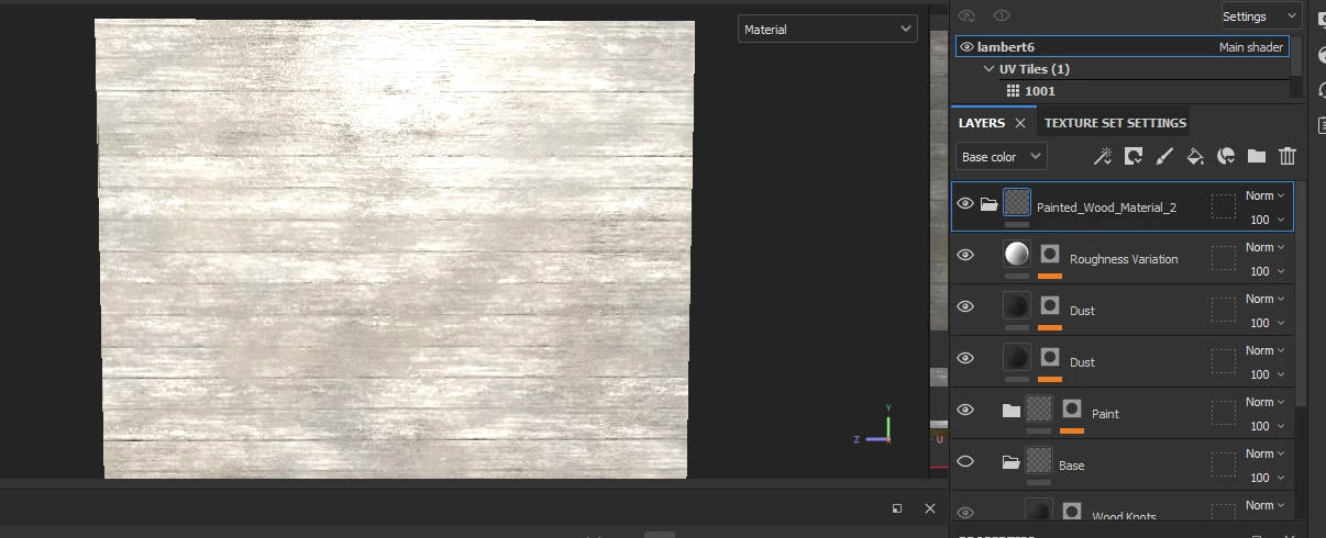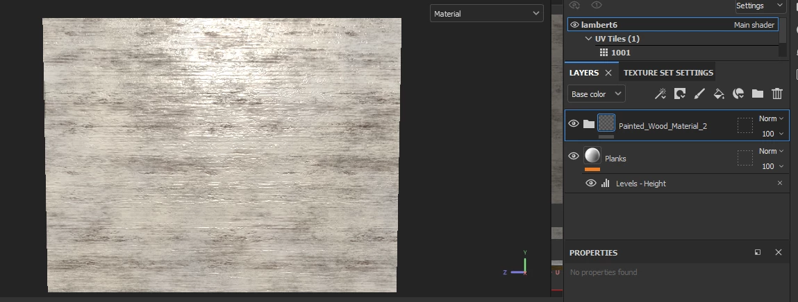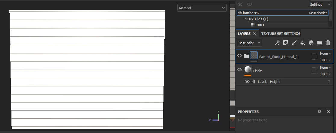 I created a painted wood material as you can see from the pic. Previous to that I created the wooden planks that I would like to show as part of the material (it's for a saloon building) but I'm having issues getting the planks to show with the material unfortunately.