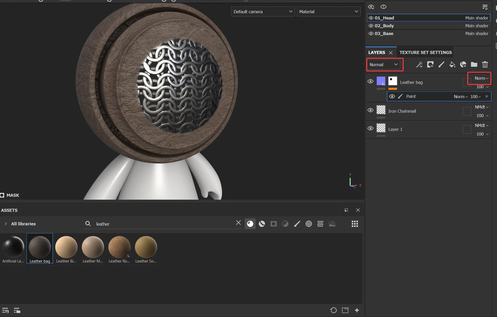 No problems! This is very likely a blending mode issue. Try to turn the top layer (the leather) normal/height blending mode to normal. Make sure you selected the correct channel before switching the blending mode.