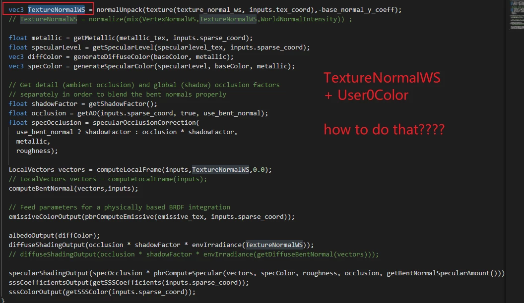 I need to obtain the color data of the user0 channel created by the artist in the shader file. If I can obtain this color data, I can perform some calculations on it and finally add it to the rendering result.