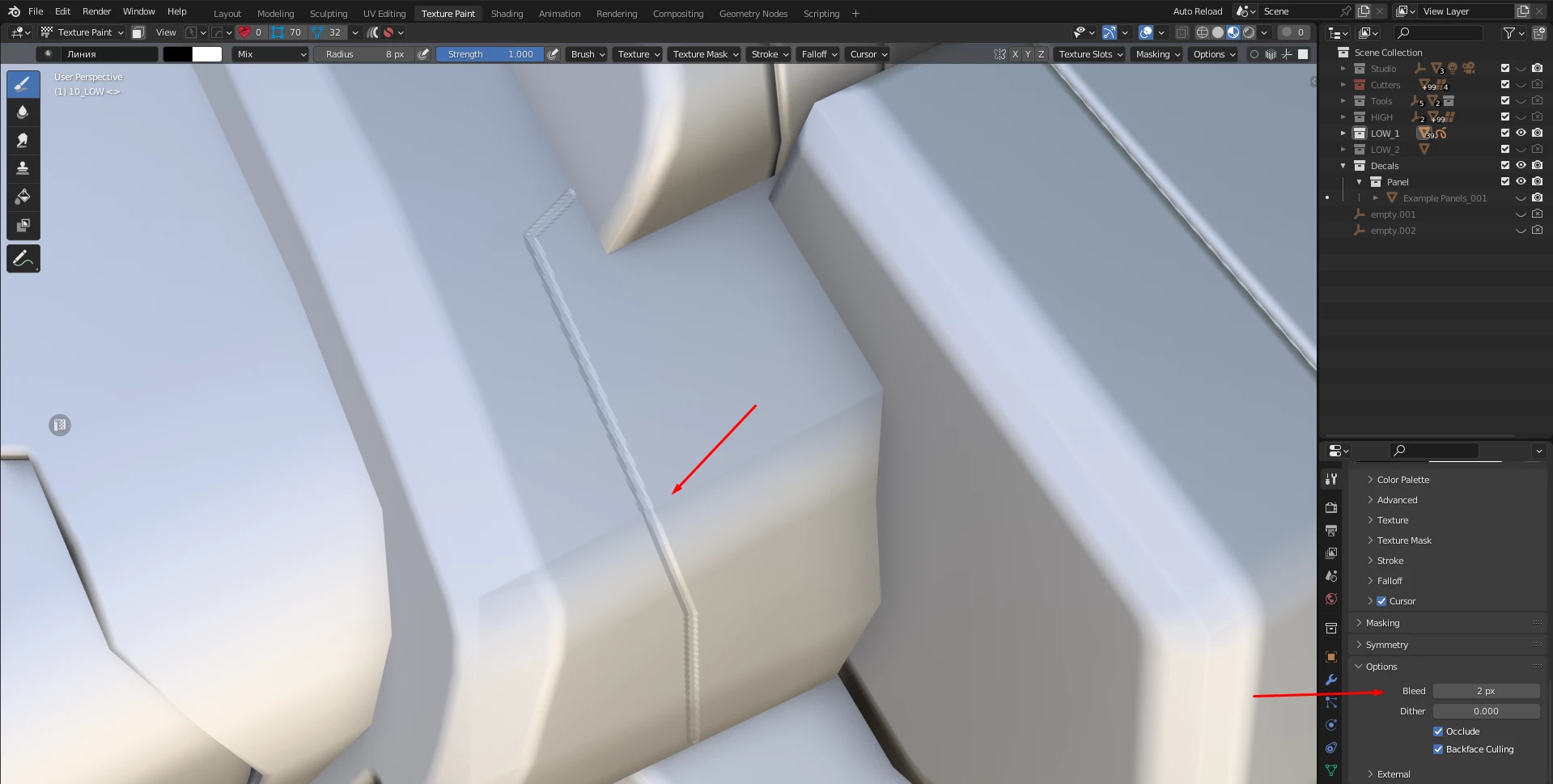When I draw between islands in Blender, everything is fine at the seams, but in SP, artifacts appear there. I understand that this is because of the Bleed settings that are in Blender but which are not in SP . How to fix it, or are these settings somewhere else?