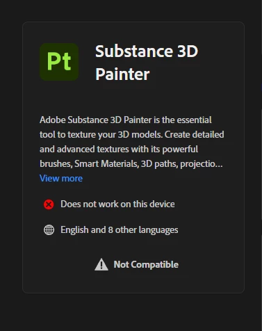 I tried downloading Substance 3D Painter today after updating my OS and ensuring my PC is fully updated, but it still says the software is not compatible.