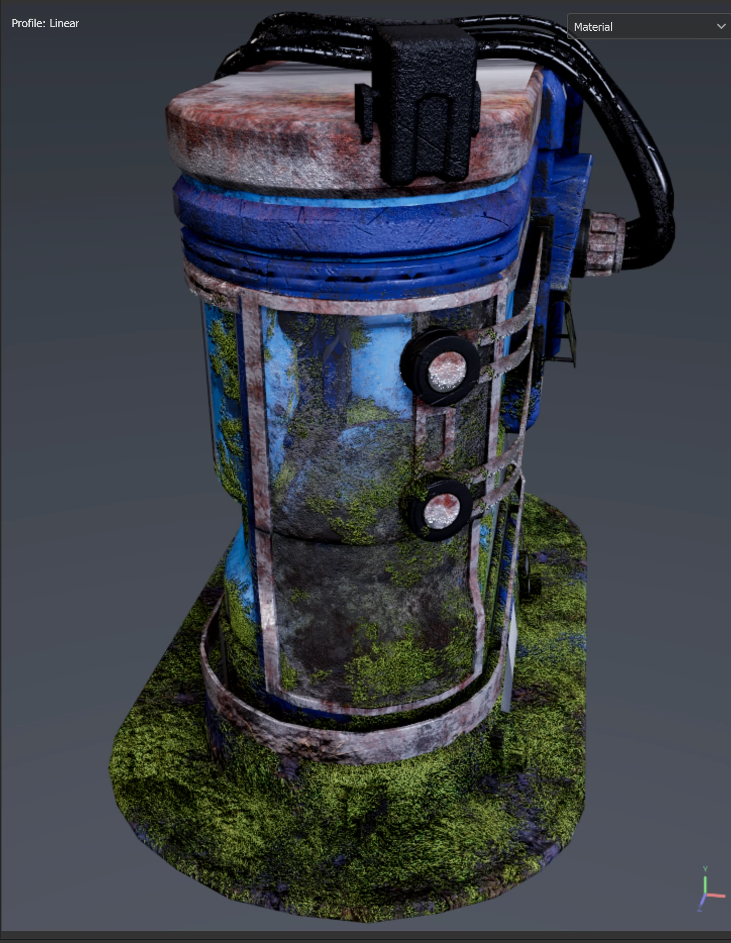 Texturing a water tank. Made a glass front for it. When I had the glass as PBR metal rough with alpha blending, it worked great in the viewport but low opacity parts came out black in the Iray render. That's an issue in itself.