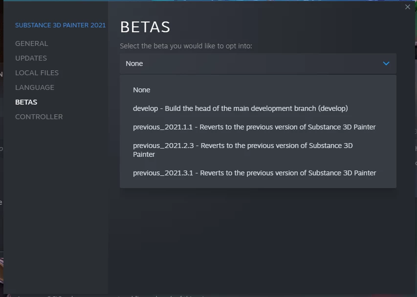 My Steam version of Substance 3D Painter updated from 7.4.1 to 7.4.2, but I wat to stay on 7.4.1 for some time.