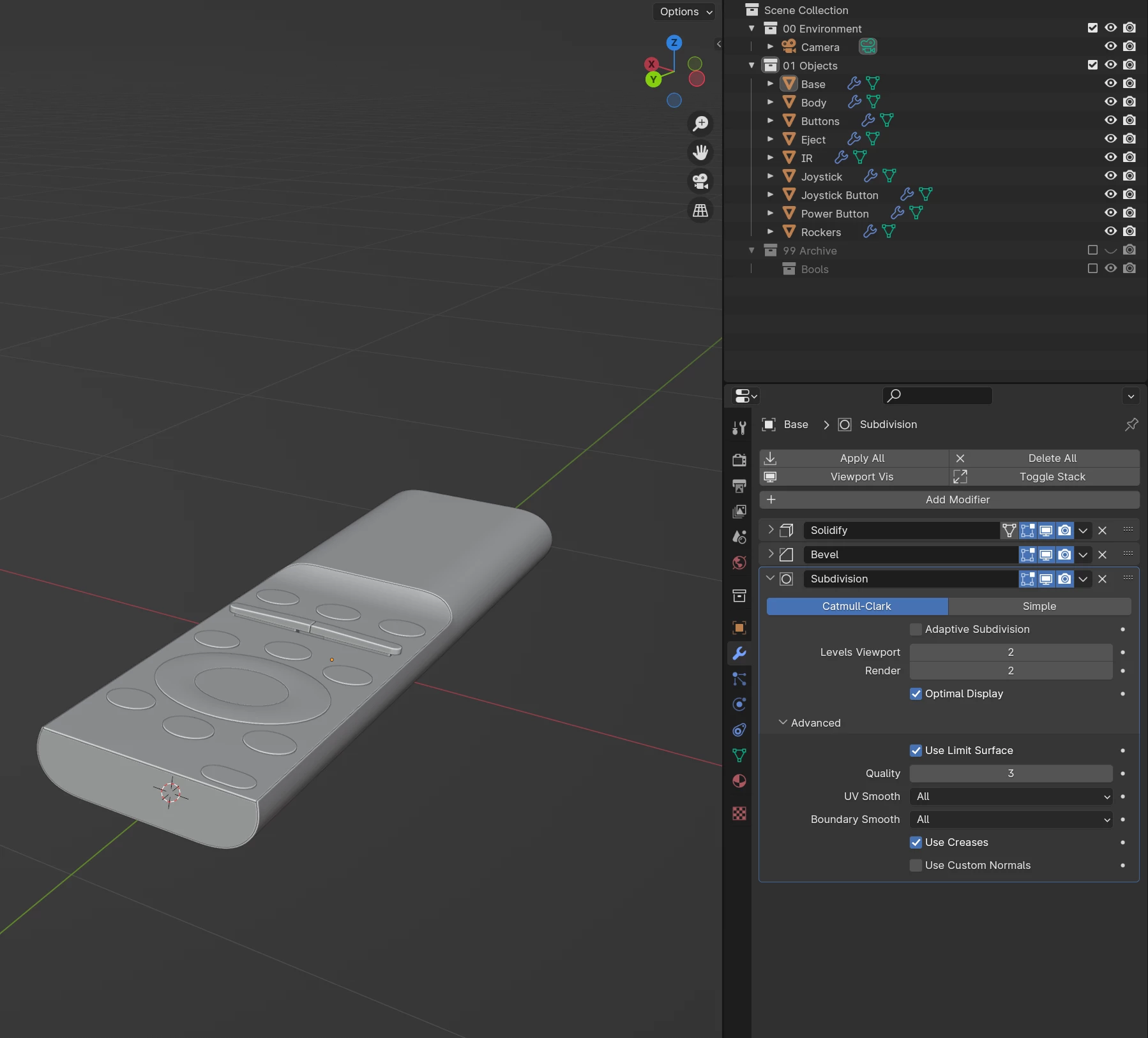 I’m working on a remote control model which I would like to texture in Substance Painter. I have unwrapped the model and packed the UVs but when I bake the mesh in Substance Painter I get weird artefacts on some of the objects. I tried multiple ways to troubleshoot this but I didn’t find a solution. Here’s what it looks like after baking the mesh:
