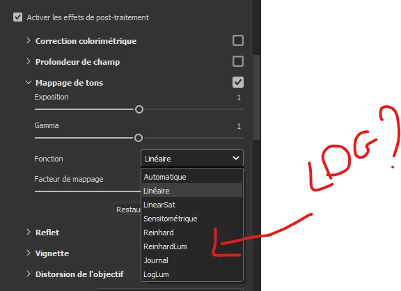 Log option Missing in the Tone Mapping options