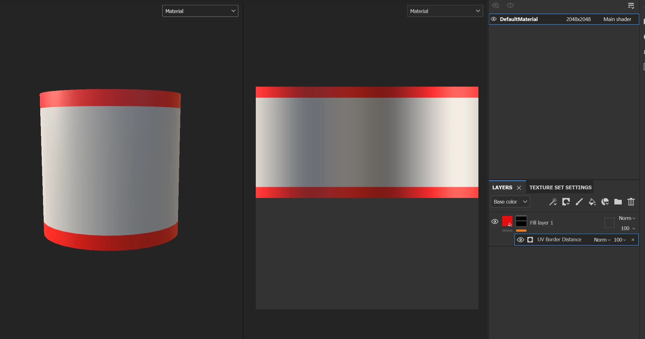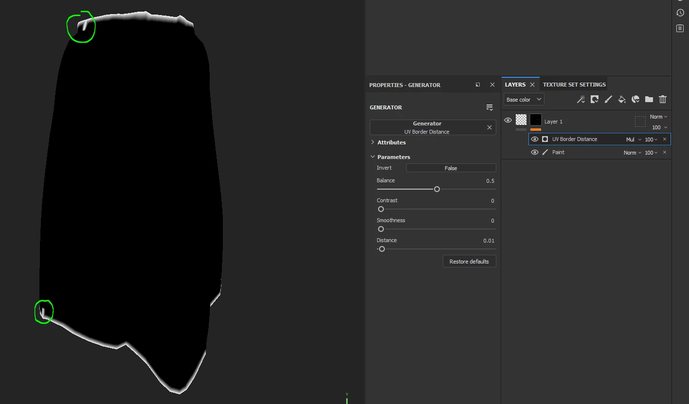 3. Use the UV border, add a paint effect, switch his blending mode to Sub, and paint the vertical seam to erase it. This solution isn't very versatile, but sometimes you don't have many other choices.