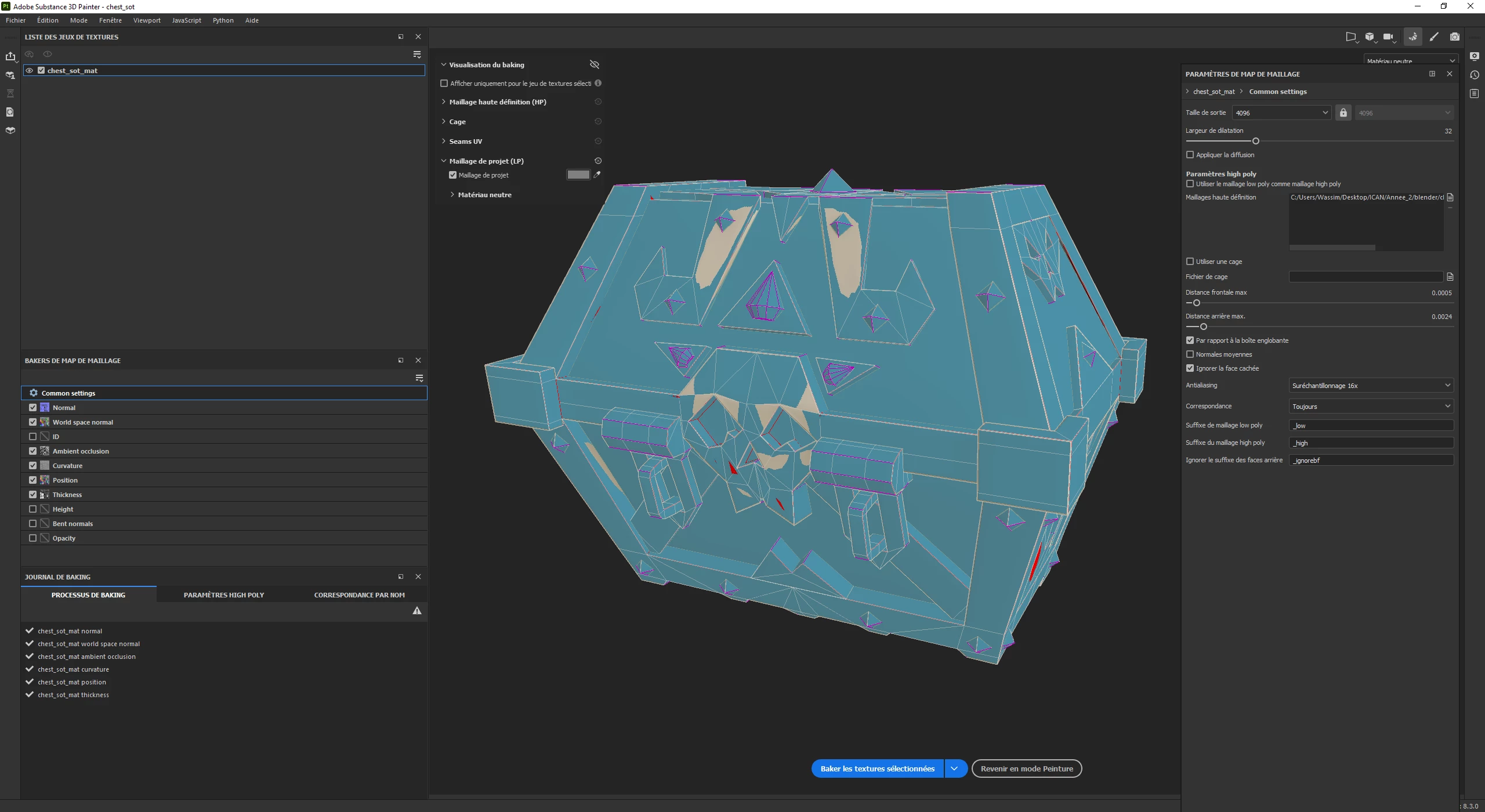 Hello I'm new to Substance Painter (and newbie to 3D modeling) ! I made a 3D model,low to high poly, (I used bevel and subdivde modifier in Blender) I exported them to fbx and bake, but I'm having a little glitch and I have no idea why