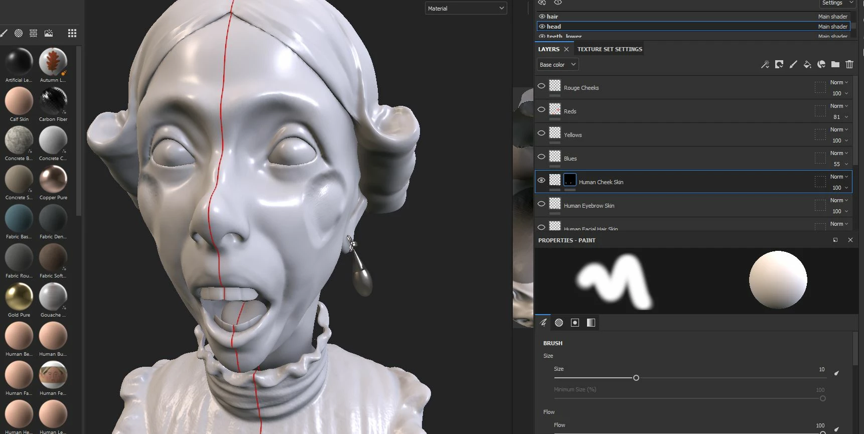 In trying to repeat my first exercise of adding skin texture variants to a character head. For example, forehead skin texture to forehead, cheek texture to cheek etc, etc (which worked exactly as the tutorial explains the first time I experimented 4 months ago) I now seeem to have odd results when I paint white onto the black mask. Instead of just revealing the texture in the localised area required, it also adds a shading effect around the outside of the stroke that creates the illusion of an indentation which you can see on the attachment. What am I doing wrong now that I was't doing when I first tried this 4 months ago? Any help would be greatly appreciated.