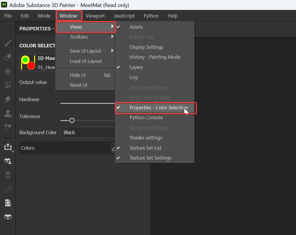 guy was able to add a black mask and then color selection. doing that got him to the properties menu of the selection to choose the ID map. i just dont get the properties menu.