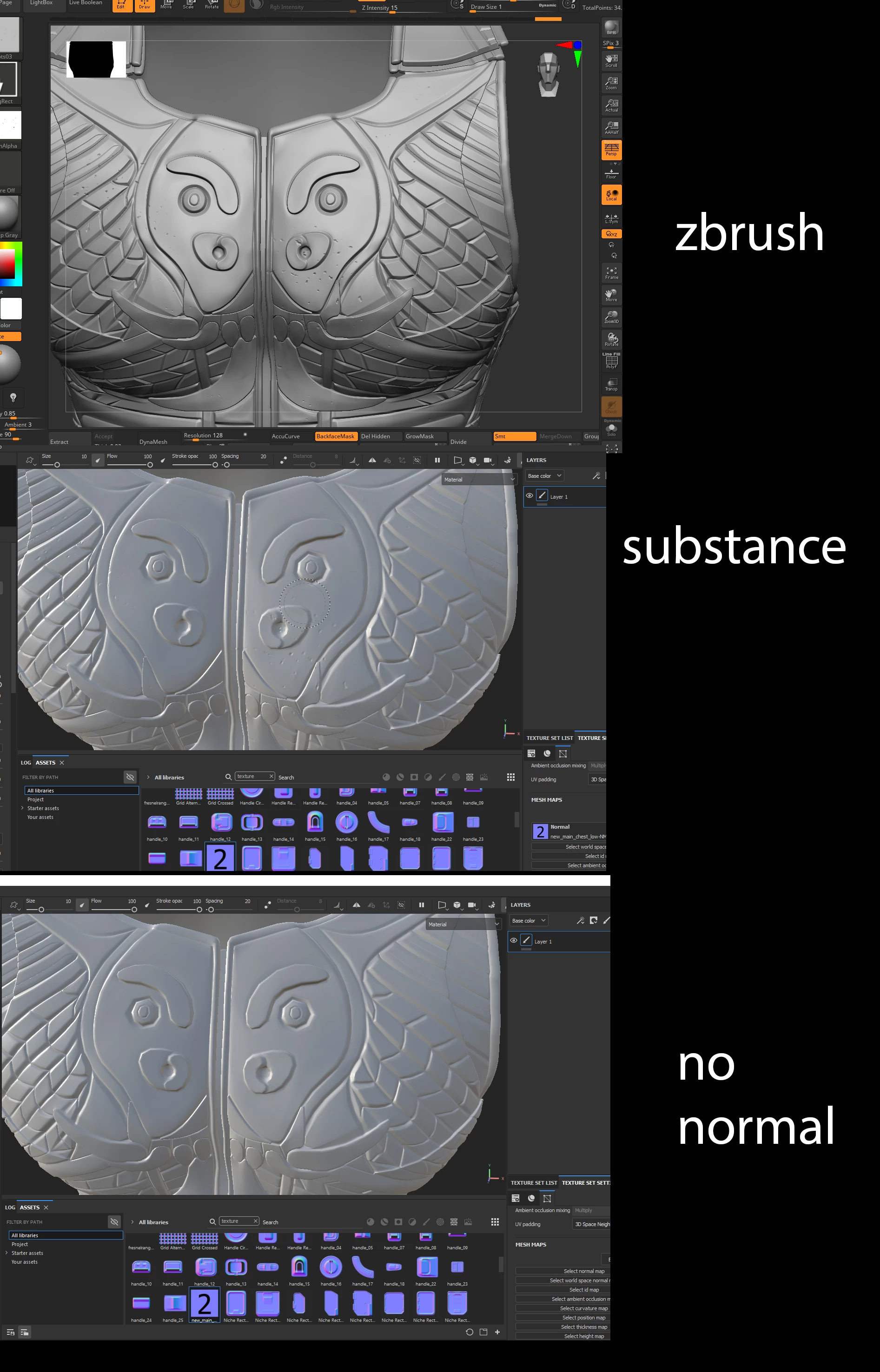 I looking for some information on how to make my normal map affect my low geo into making look more smoothly like how it looks like on Zbrush. I have uploaded a jpeg with image showing the before and after how and how the normal map does pretty much nothing it basically looks the same with or without it. Only difference is that its picking up some of the zbrush damage I created but its doing nothing to affect the smoothness and thats what I really want. Has far has a i know thats the whole purpose of a normal map. The normal map is exported from "Zbrush Multimap exporter" and its a 8k Udim just to experiement. I hope to hear from your soon guys and have goodnight/ day.