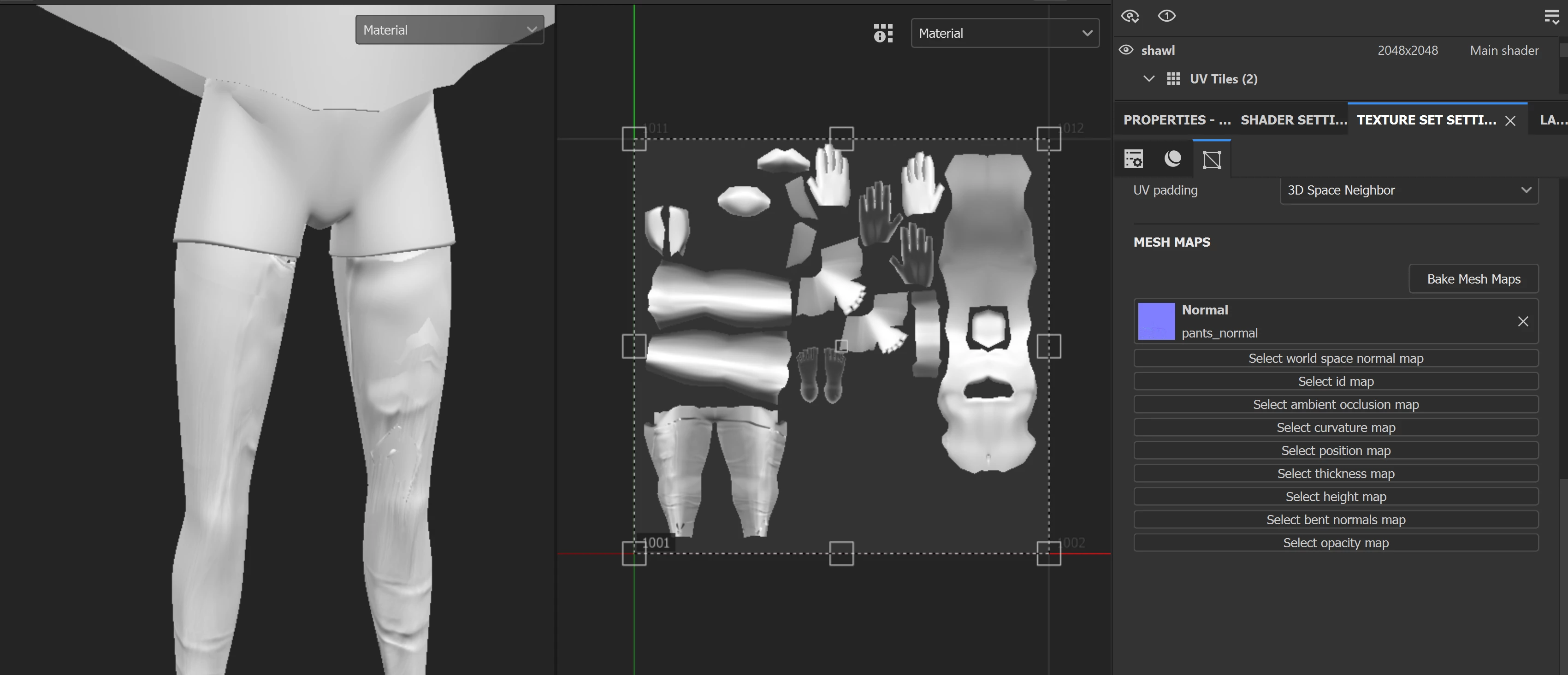 I've searched all over for any answers to the issue I'm having with no luck. I created a low-poly mesh in Maya, UV mapped the mesh over 3 separate tiles, then sculpted it in Mudbox to extract the normal maps. I want to work on it in Substance Painter, but the normal maps only show up on UV tile 1001. Each part of the model has a different material, so thats not the issue. I don't think the exporting from Mudbox is the issue either, since they show up fine on the 1001 tile.