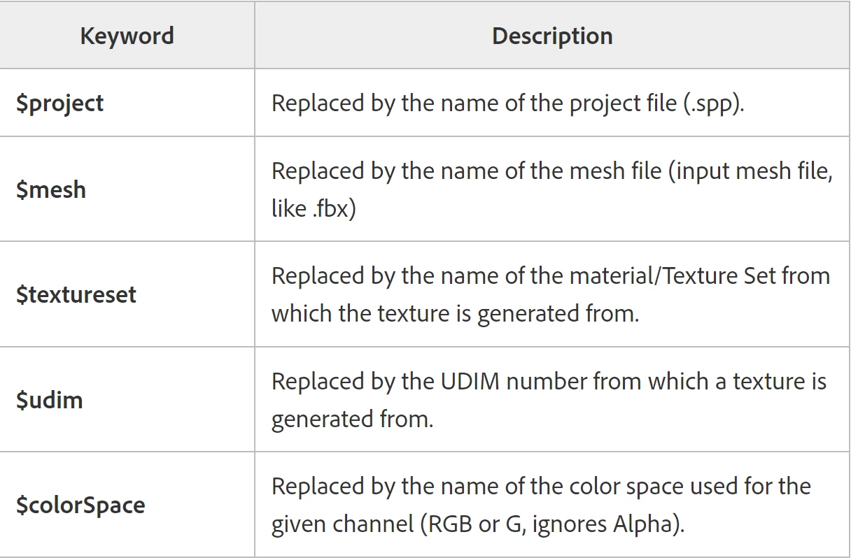 Does anyone know if in Subtance Painter, for the output maps it is possible to omit some words using $textureSet or $mesh? I mean I always use the name of my materials as MAT_House, I would like that "MAT_" does not appear when exporting or if my mesh is called FBX_House does not appear "FBX_".