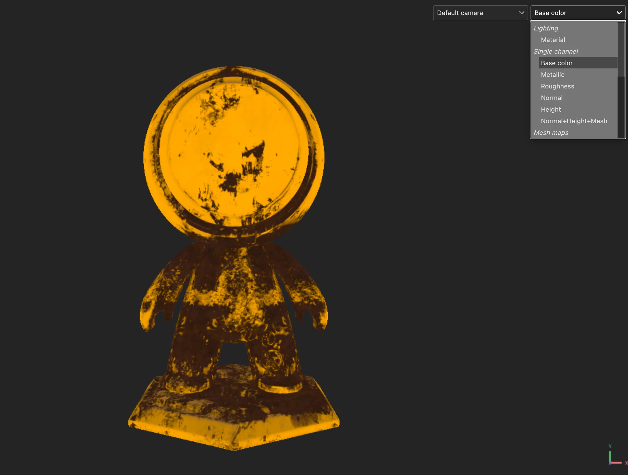 Sometimes it's necessary to use baked in base color map from photogrammetry. I know it's better to create them myself, but in this case I need the baked in map with the baked in light and shadows. I would like to adjust it only a bit. Using painter isn't suitable to do that. It has an interface with build in HDR environments with it's own light and shadow. I need a space where I can just see my bake without the added light and shadow from Painter and there's no way I can find up to now.