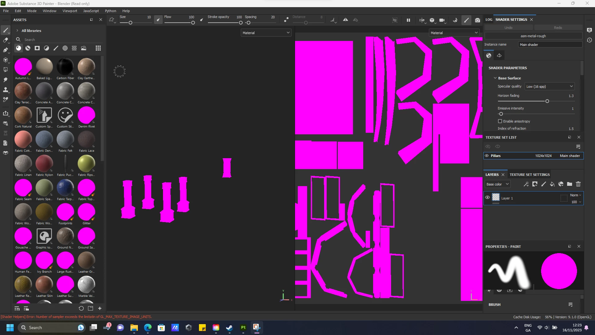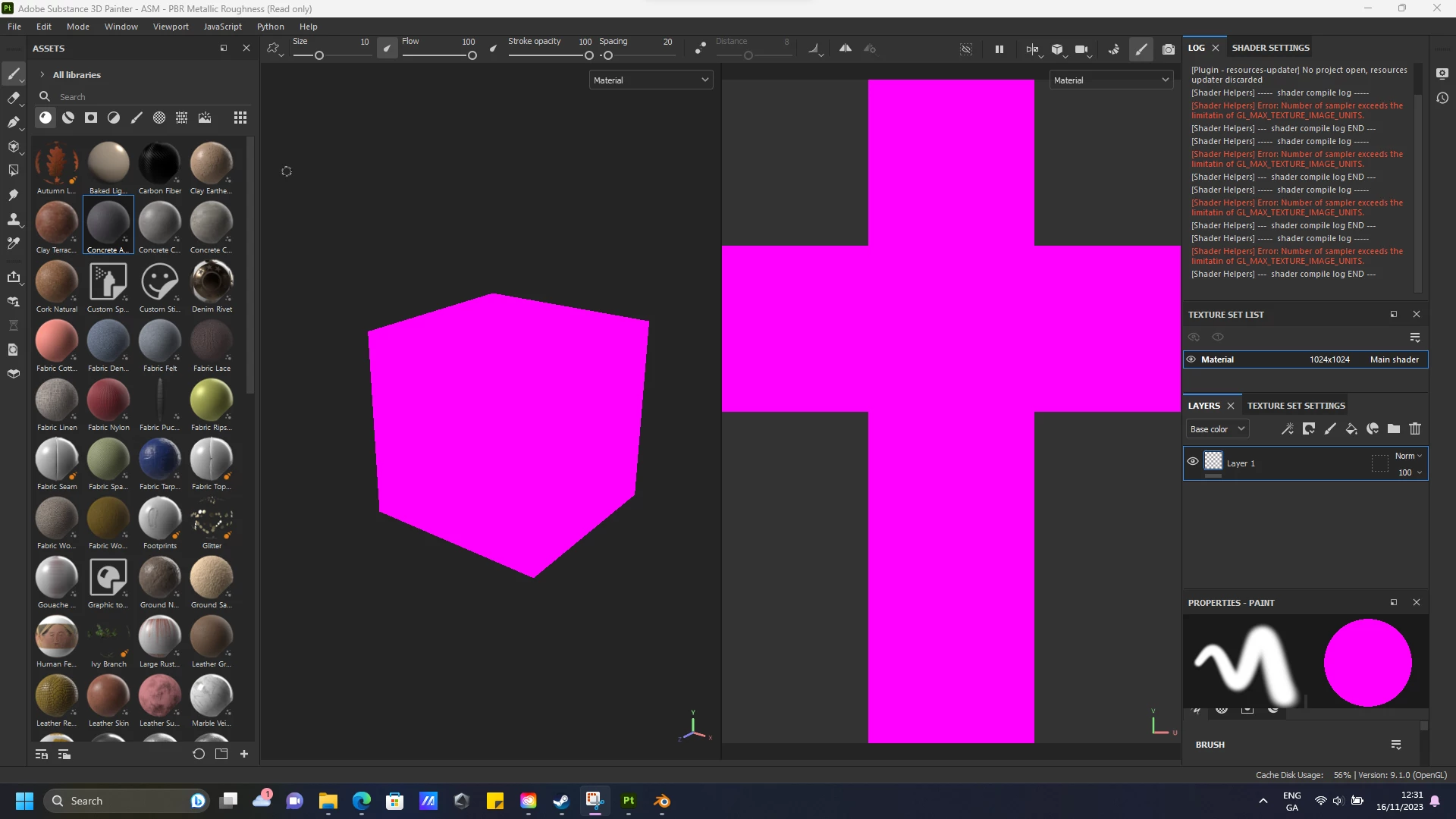Just installed Substance Painter, open it and most of the materials and the model I brought in are pink