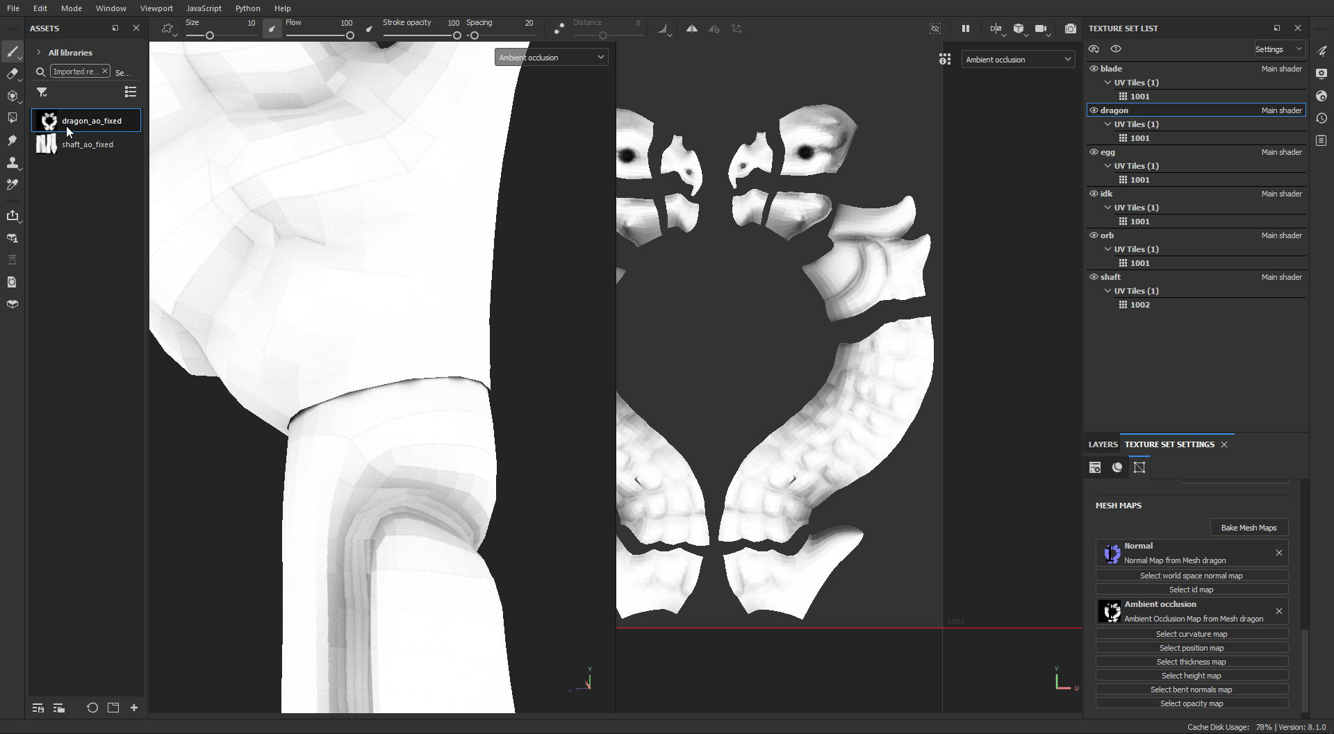 Hello! I'm new to painter and baking in general. I just fixed two ao maps and imported them back in.