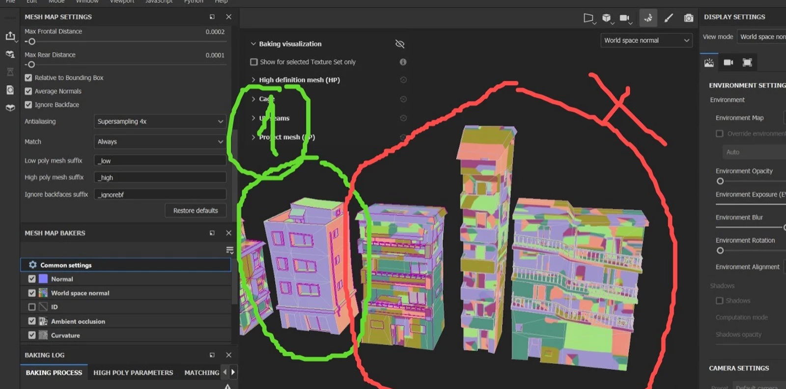 When I open the .obj of "building 1" separately, ithe bake is fine.