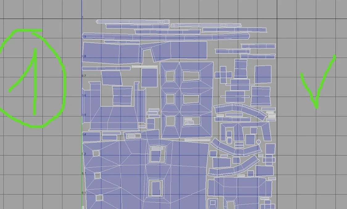 The "building 1" is correct. The rest are shown as if the UVs were overlapping, which is not the case. As it can be seen in the image "UVs_no_result_bake".