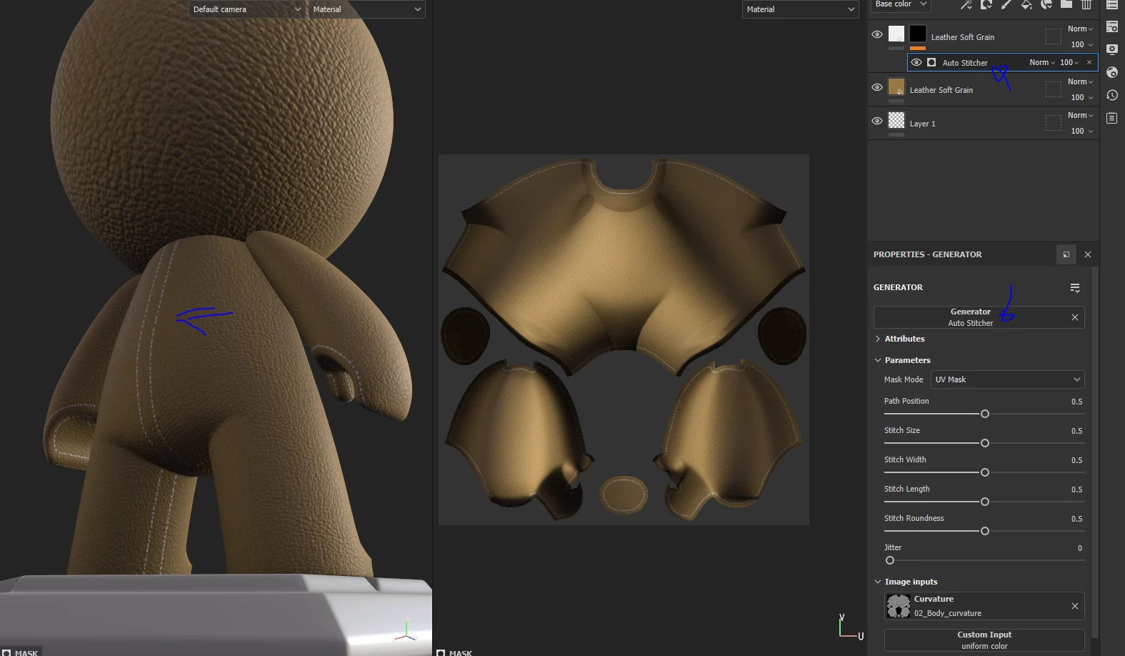 I'm wondering how I cam make my stitches procedural? I can use fill layers and masks to make everything else I do procedural but I'm constantly re-drawing my stitches. I have the same sweater model that I re-render again and again with new designs and it would go INFINITLY faster if I could only procedually change the colour of my stitches.