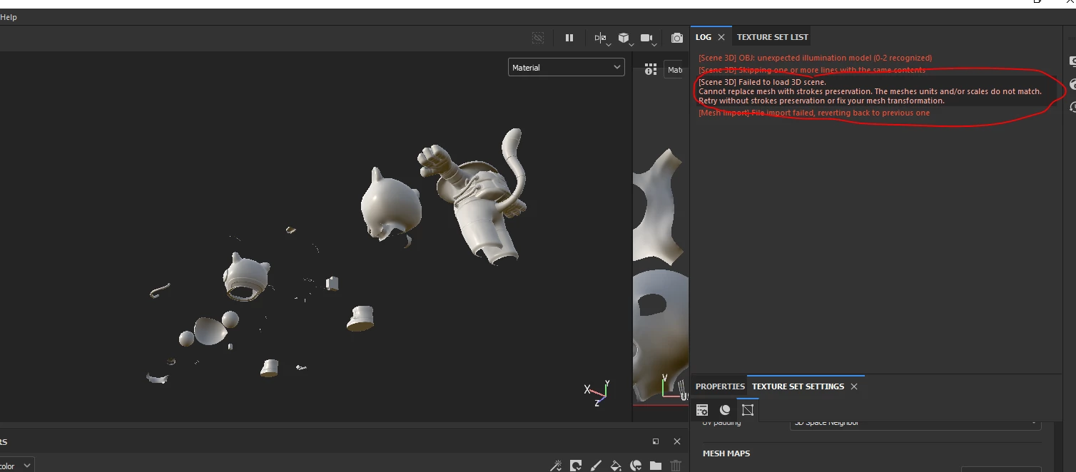 Hello everyone, please  can you help me?, i'm still new in Substance. when i reimport the mesh (edit/ project configuration), there is a message like this:
