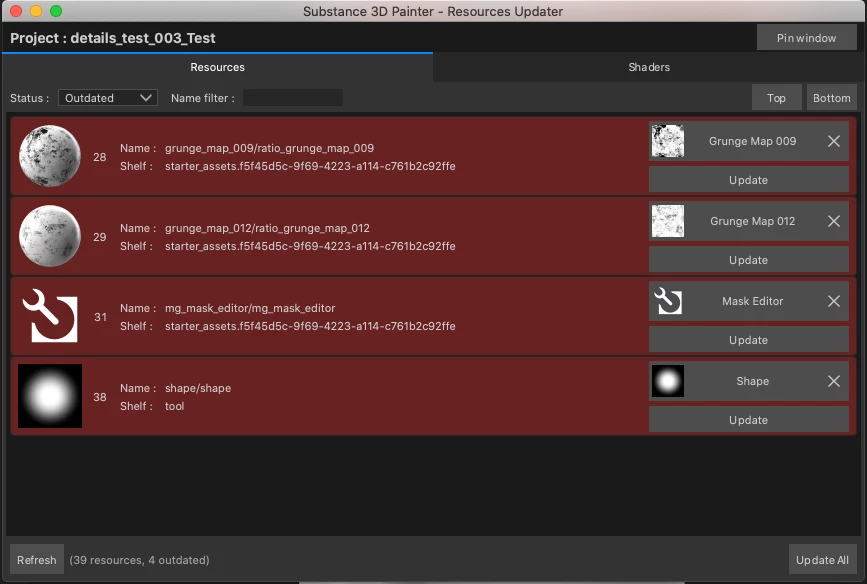 I'm working in Substance Painter 7.4.2 and the Resources Updater is asking to update a few resources. I've made several attempts but for some reason the following files will not update (see attached image). Anyone have a solution to this?