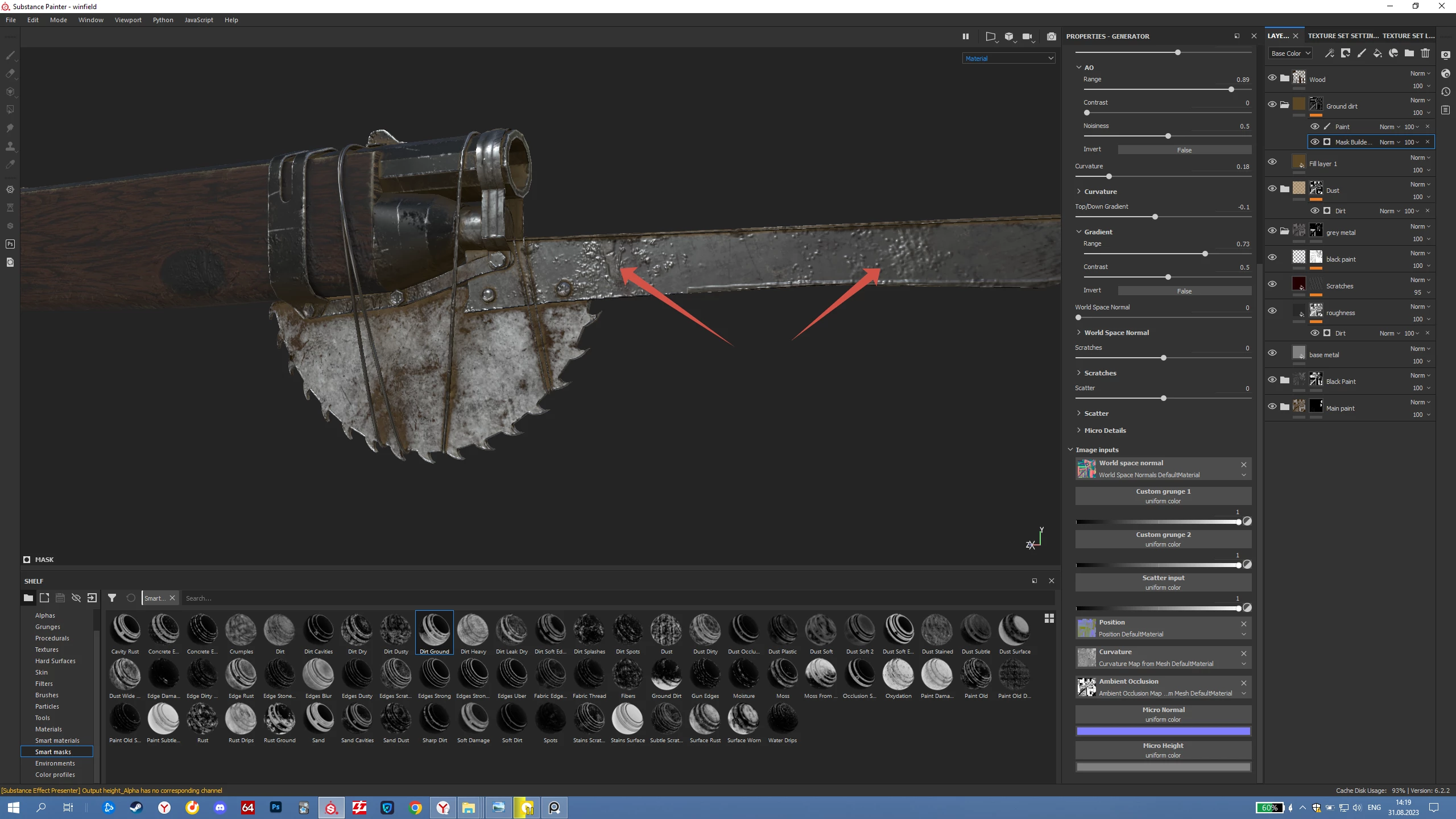 When i'm using smart mask "Dirt ground", brown colour on light materials doesn't appear