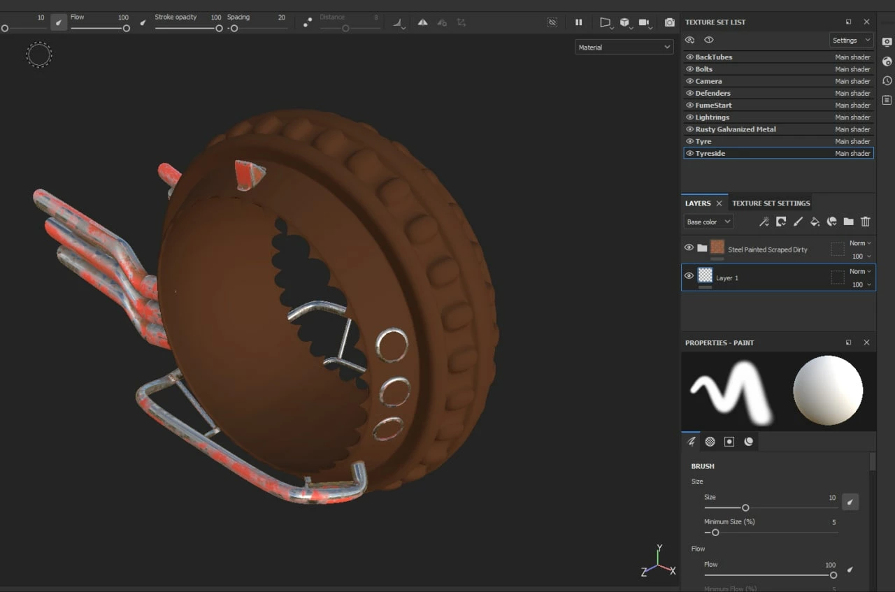 something strange is happening with the smart materials. I've applied the same smart material to all meshes, but it's not working for the wheel.