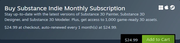 The two $24.99 subscriptions from Adobe and Steam are different, right? I want to make sure it's not a typo or anything before I sign up the one from Steam because I have no use for S. Sampler. Steam subscription have any limitations for S. Painter and Modeler?