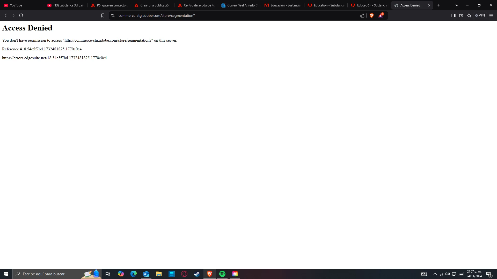 Hola, tengo un problema con el programa Substance 3D Painter. Resulta que intenté entrar al programa pero me sale un error que dice "Access Denied" y luego de eso abrí Adobe Creative Cloud para desisnstalar el programa y volverlo a instalar, pero me dice que compre una licencia, lo cual a mi no me cuadra porque se supone que tengo una licencia gratuita de un año y ahora me dicen que compre una licencia.