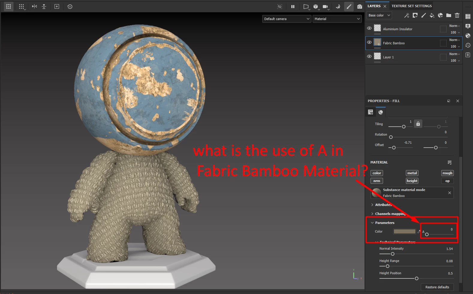 What is the Use of Alpha in Fabric Bamboo Material which is located inside Substance Painter?