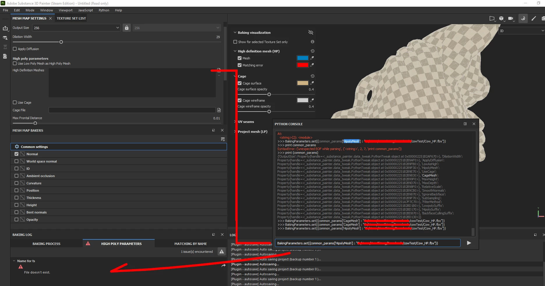 Substance Painter Python issue common_params['HipolyMesh'] File not found error