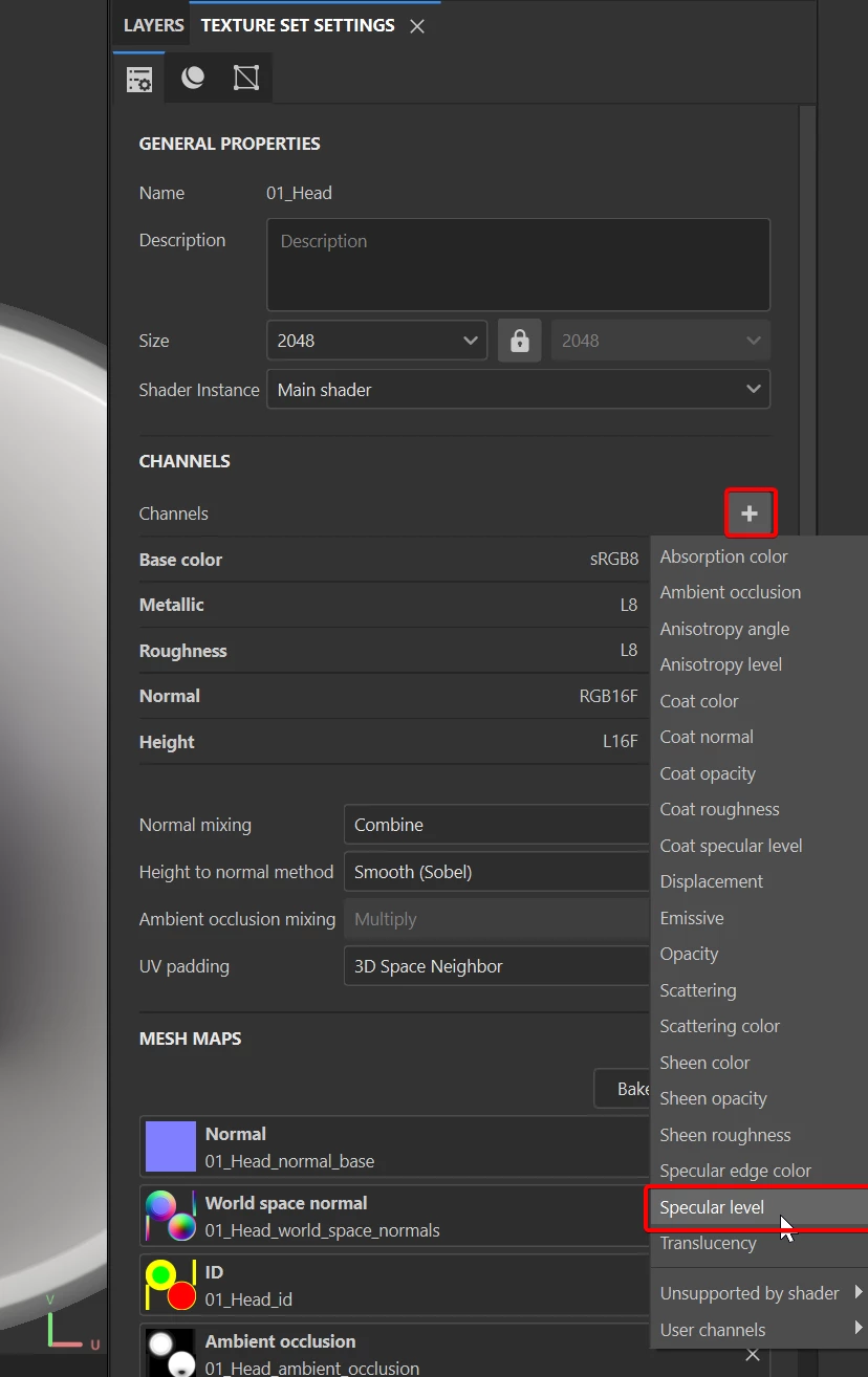 [MapExporter] The input map 'Specular' needed by the map 'fatigues_s' of the texture set 'DefaultMaterial' isn't available because: 'Specular' channel is missing in your texture set.
