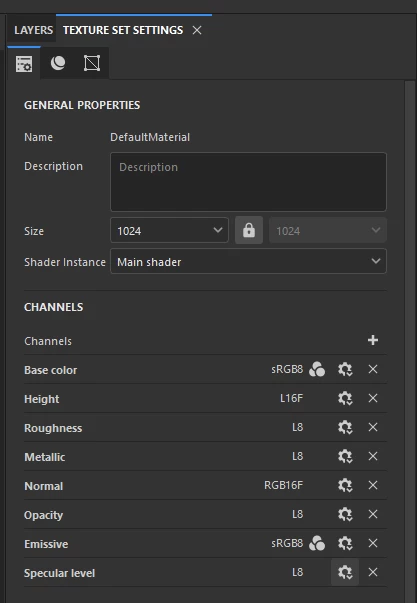 [MapExporter] The input map 'Glossiness' needed by the map 'fatigues_s' of the texture set 'DefaultMaterial' isn't available because: 'Glossiness' channel is missing in your texture set.