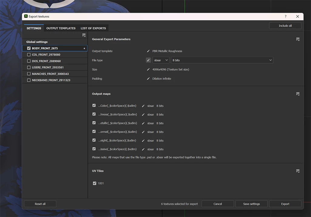 I created a t-shirt in CLO 3D (Mesh Type: Quad) and exported it as an OBJ with the UV maps. In Substance Painter, I imported the OBJ and the maps, baked all the mesh maps, applied my textures, and then exported the textures. I only exported one of the textures (body_Front) into CLO 3D. However, in CLO 3D, my texture does not appear (sbsar) or appears distorted (png). What could be causing this issue, and how can I fix it?