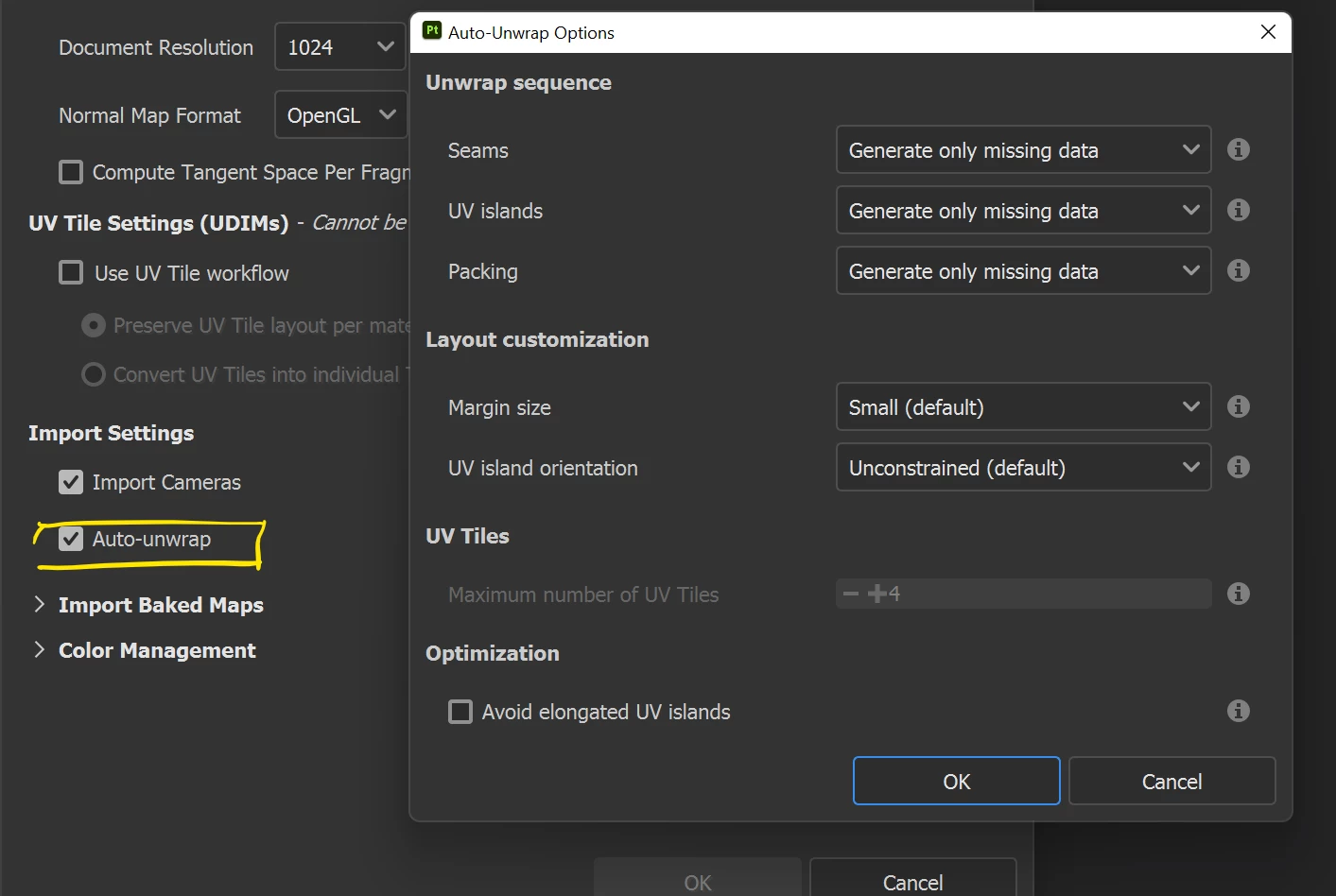 This might be due to the automatic unwrap tool being used with specific parameters. By default, the auto unwrap feature should generate only the missing data.