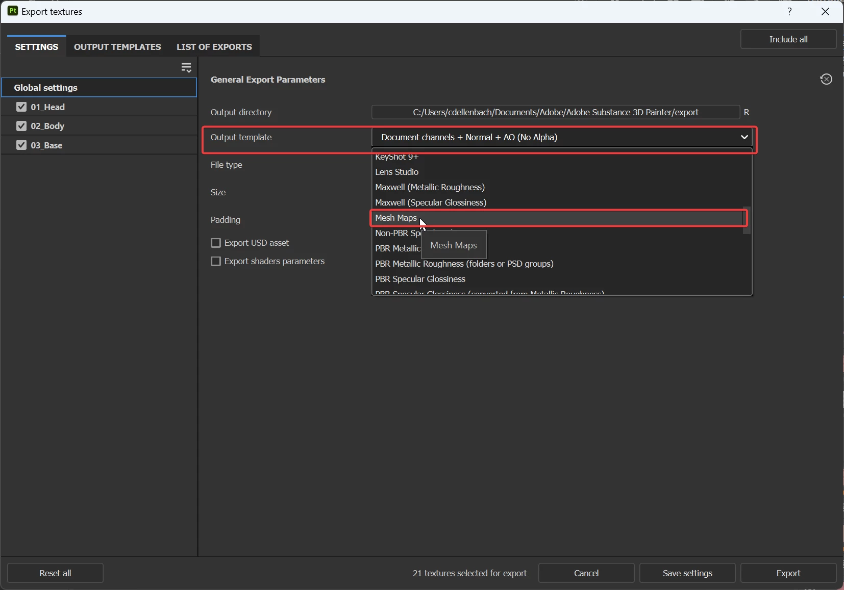 I'm having an issue with this model - I've baked all maps in Substance, and the maps are looking fine in the texture set list, but when I export I only get blank image files with no details at all. (I didn't experience this with other models yesterday and I don't think I changed any settings, but I'm a new user so it's possible!)