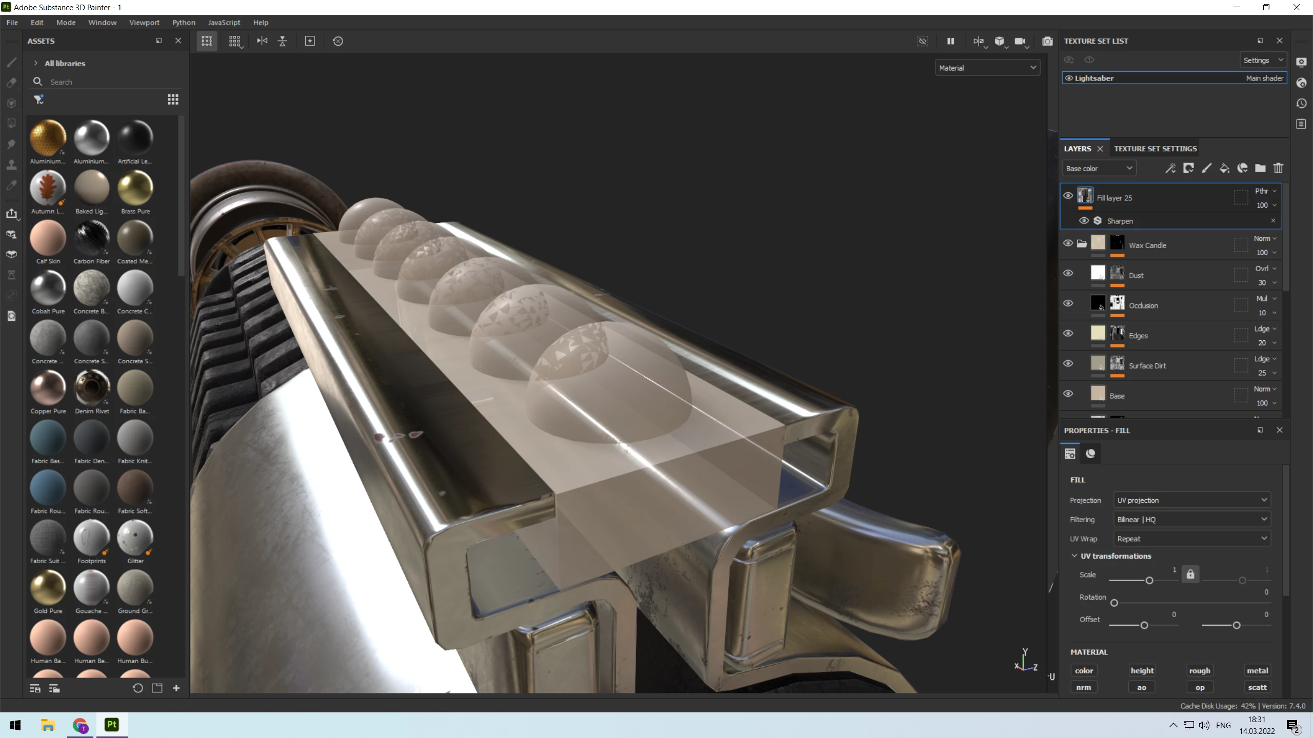 Hey everyone. Please help me, I am so lost. This is my first project in SP where I'm facing with the issue of making a translucent / semi-opaque plastic material. I tried playing with subsurface scattering using pbr metallic roughness shader, as well as pbr with alpha blending opacity channel, but it's giving me a very unrealistic result (it's too clear, and no distortion withing the mesh). I made something similar in blender cycles (render attached), but I'd love to add some dirt, dust, etc. in SP, & give my project a render in l-ray. Is there any way to achieve this effect in substance painter? Well... I know there is because there is because I've seen similar projects on Artstation.