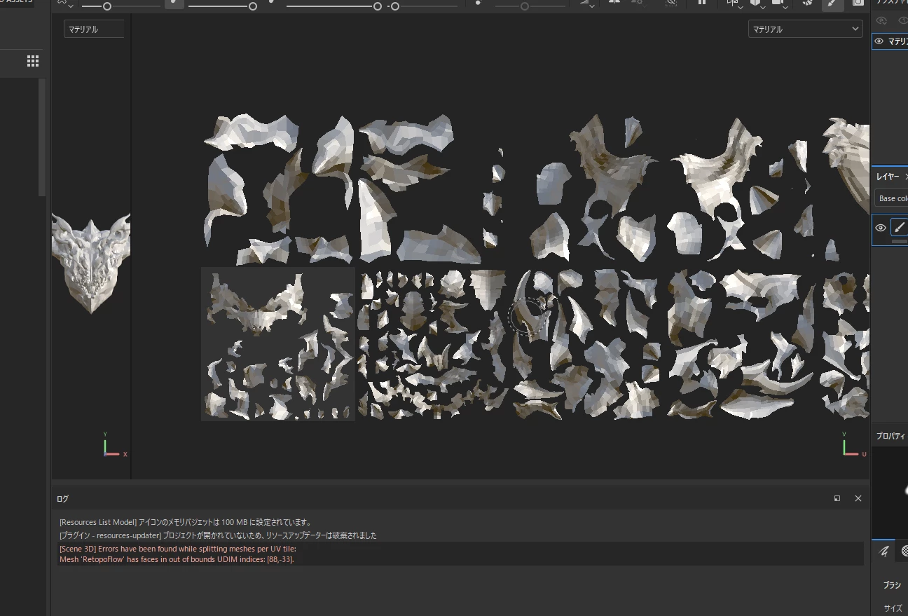 ・Mesh 'RetopoFlow' has faces in out of bounds UDIM indices: [88,-33].