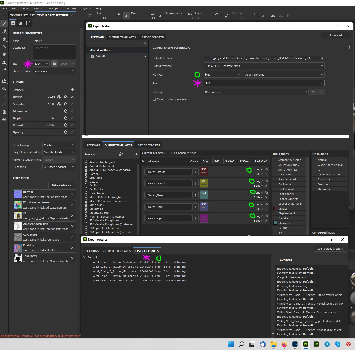 No matter the project size ( In General Properties set to 1024), or in the General Export Parameters ( set to 512 ), the list of exports shows, and exports at 2048. (All marked with a pink star in the attached image ). How do I export at any size other than 2048? Am I having a senior moment?