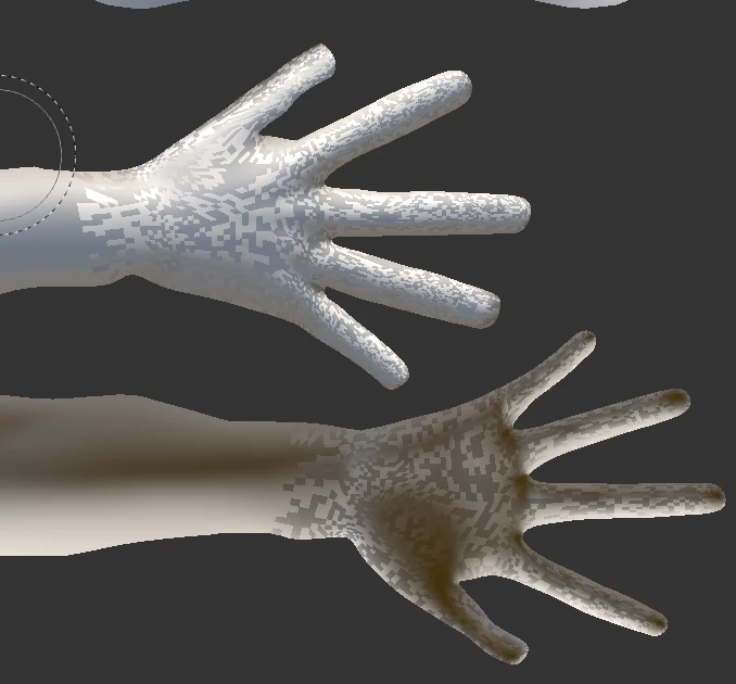 (artifacting on hands when importing the FBX mesh into SP. The rest of the UV is fine)